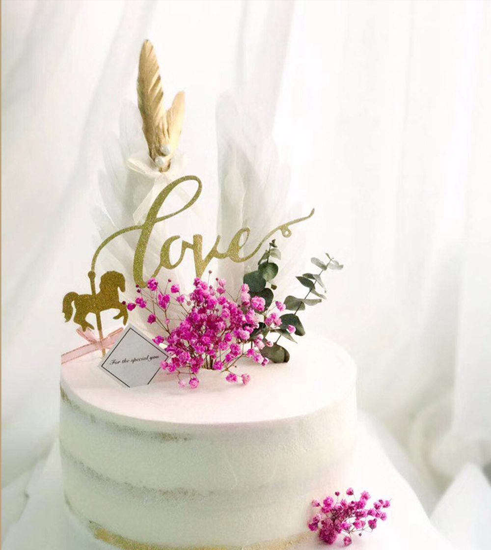 Acquista Oro Argento Rosa Piuma Torta Topper Con Stuzzicadenti Torta